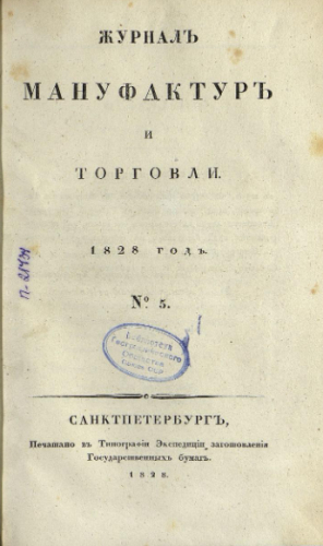 Журнал мануфактур и торговли. 1828, № 5. - Санкт-Петербург, 1828