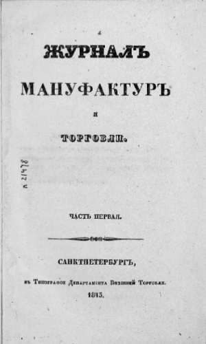Журнал мануфактур и торговли. 1845, № 1-2. - Санкт-Петербург, 1845