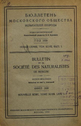 Бюллетень Московского общества испытателей природы. Новая серия. Т. 48. Вып. 1. Отдел биологический. - М. : МГУ, 1939