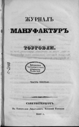 Журнал мануфактур и торговли. 1849, № 7. - Санкт-Петербург, 1849