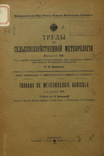 Труды по сельскохозяйственной метеорологии. Вып. 19. - Петроград: Метеобюро Ученого комитета Мин. зем., 1916