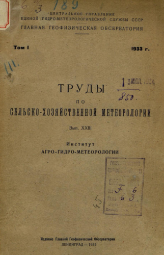 Труды по сельскохозяйственной метеорологии. Вып. 23. - Л. : Гл. геофиз. обсерватория, 1933