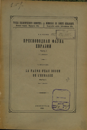 Труды Геологического комитета. Новая серия. Вып. 135 : Пресноводная фауна Евразии. Ч. 1. / В.В. Богачев - Ленинград, 1924