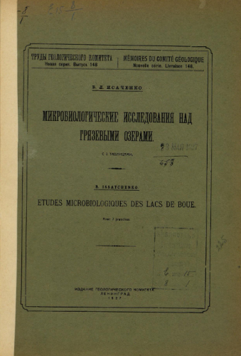Труды Геологического комитета. Новая серия. Вып. 148 : Микробиологические исследования над грязевыми озерами / В.Л. Исаченко. - Ленинград, 1927