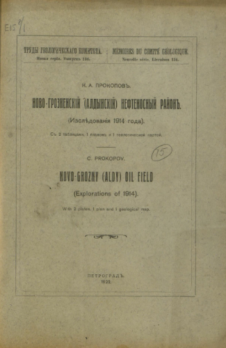 Труды Геологического комитета. Новая серия. Вып. 134 : Ново-Грозненский (Алдынский) нефтеносный район (Исследования 1914 года) / К.А. Прокопов. - Петроград, 1922