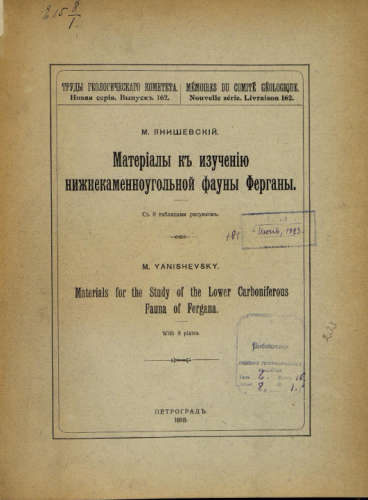 Труды Геологического комитета. Новая серия. Вып. 162 : Материалы к изучению нижнекаменноугольной фауны Ферганы / М. Янишевский - Петроград, 1918