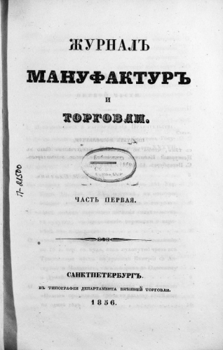 Журнал мануфактур и торговли. 1856, № 1-3. - Санкт-Петербург, 1856
