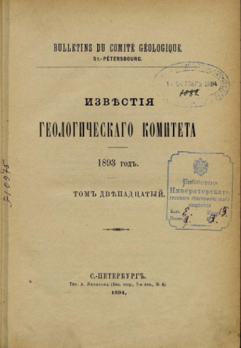 Известия Геологического комитета. Т. 12. - Санкт-Петербург, 1894