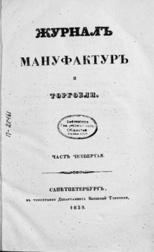 Журнал мануфактур и торговли. 1839, № 10. - Санкт-Петербург, 1839