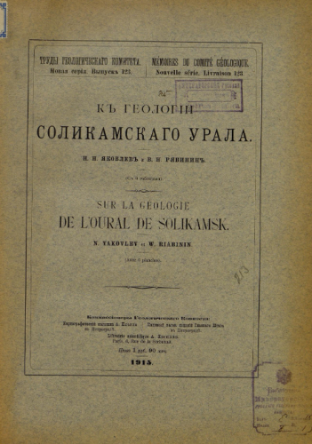 Труды Геологического комитета. Новая серия. Вып. 123 : К геологии Соликамского Урала / Н.Н. Яковлев и В.Н. Рябинин. - Петроград, 1915