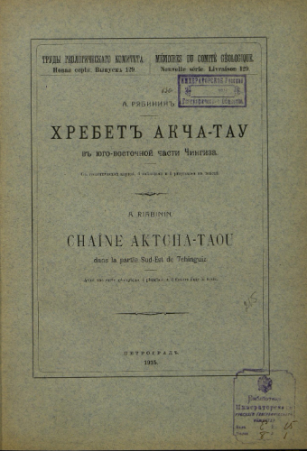 Труды Геологического комитета. Новая серия. Вып. 129 : Хребет Акча-Тау в юго-восточной части Чингиза / А. Рябинин. - Петроград, 1915