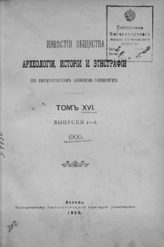Известия Общества археологии, истории и этнографии при Имп. Казанском ун-те. Т. 16. - Казань, 1900