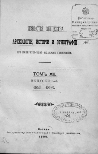 Известия Общества археологии, истории и этнографии при Имп. Казанском ун-те. Т. 13. - Казань, 1896
