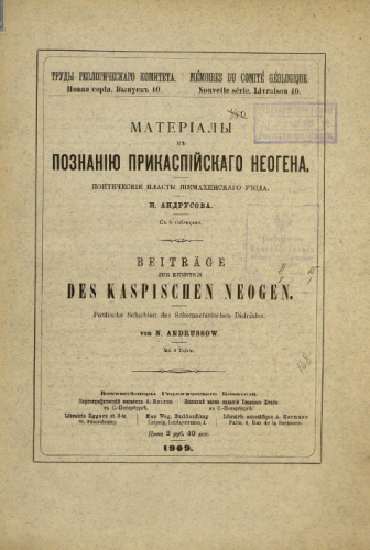 Труды Геологического комитета. Новая серия. Вып. 40 : Материалы к познанию прикаспийского неогена. Понтические пласты Шемахинского уезда / Н. Андрусов. - Санкт-Петербург, 1909