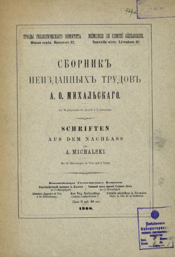 Труды Геологического комитета. Новая серия. Вып. 32 : Сборник неизданных трудов А.О. Михальского - Санкт-Петербург, 1908