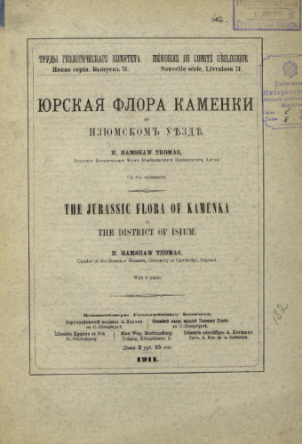 Труды Геологического комитета. Новая серия. Вып. 71 : Юрская флора Каменки в Изюмском уезде / H. Hamshaw Thomas. - Санкт-Петербург, 1911