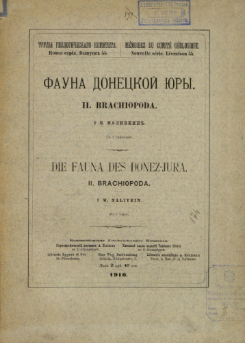 Труды Геологического комитета. Новая серия. Вып. 55 : Фауна Донецкой юры. [Ч.] 2 : Brachiopoda / В. Наливкин. - Санкт-Петербург, 1910