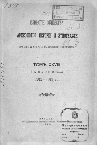 Известия Общества археологии, истории и этнографии при Имп. Казанском ун-те. Т. 28. - Казань, 1913
