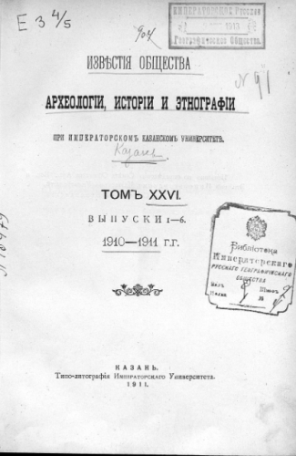 Известия Общества археологии, истории и этнографии при Имп. Казанском ун-те. Т. 26. - Казань, 1911