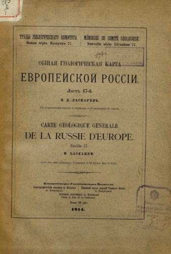 Труды Геологического комитета. Новая серия. Вып. 77 : Общая геологическая карта Европейской России. Лист 17-й / В.Д. Ласкарев - Петроград, 1914