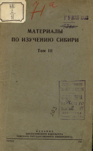 Материалы по изучению Сибири. Т. 3. / Биол. фак. Томского гос. ун-та. - Томск, 1931