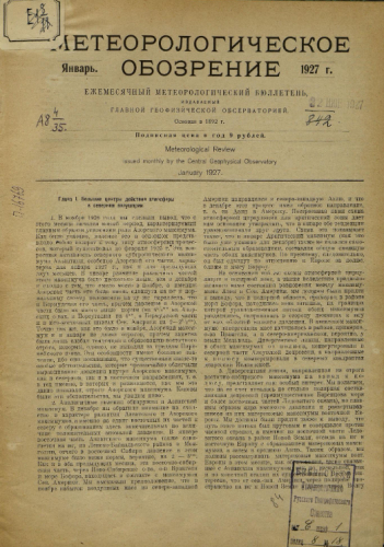 Метеорологическое обозрение. Январь, 1927. - Л. : Гл. геофиз. обсерватория, 1927