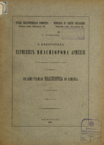 Труды Геологического комитета. Новая серия. Вып. 111 : О некоторых пермских Brachiopoda Армении / А. Стоянов - Петроград, 1916