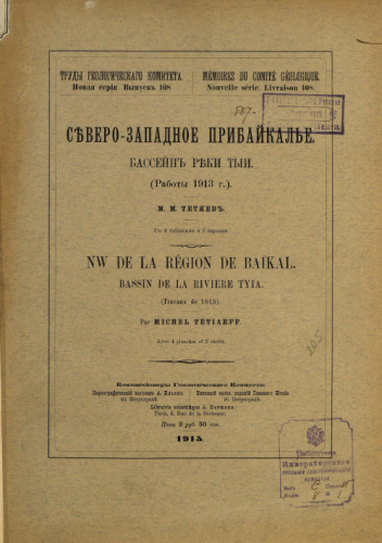 Труды Геологического комитета. Новая серия. Вып. 108 : Северо-западное Прибайкалье. Бассейн реки Тыи. (Работы 1913 г.) / М.М. Тетяев - Петроград, 1915