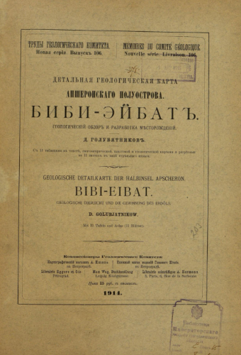 Труды Геологического комитета. Новая серия. Вып. 106 : Детальная геологическая карта Апшеронского полуострова. Биби-Эйбат. Геологический обзор и разработка месторождений. / Д. Голубятников - Санкт-Петербург, 1914