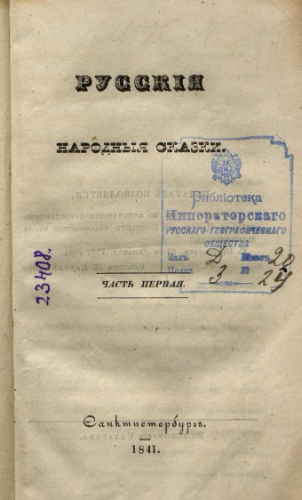 Русские народные сказки. Ч. 1. / [сост. И. Сахаров]. - Санкт-Петербург : Тип. Сахарова, 1841