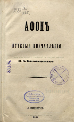 Благовещенский, Николай Александрович (1837-1889). Афон : путевые впечатления / [соч.] Н.А. Благовещенского. - Санкт-Петербург : Тип. Рюмина и К°, 1864