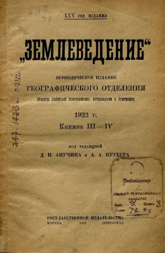Землеведение. Т. 25, Кн. 3-4. - Москва ; Петроград : Геогр. отд. Об-ва любителей естествознания, антропологии и этнографии ; Госиздат, 1923