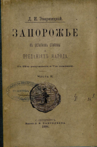 Эварницкий, Дмитрий Иванович (1855-1940). Запорожье в остатках старины и преданиях народа. Ч. 2. / Д.И. Эварницкий. - Санкт-Петербург : Изд. Л.Ф. Пантелеева, 1888