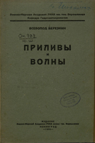 Березкин, Всеволод Александрович (1899-1946). Приливы и волны / В. Березкин. - Ленинград : Воен.-мор. акад. РККА им. т. Ворошилова, 1932