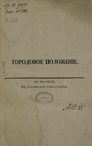 Городовое положение. - Москва : В Сенатской тип., 1785