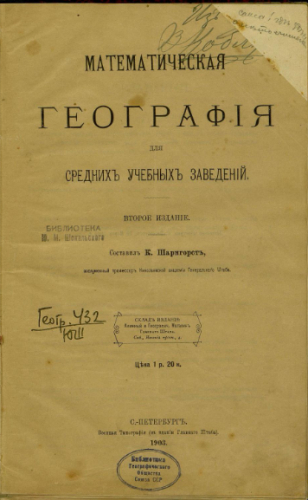 Шарнгорст, Константин Васильевич (1846-1908). Математическая география для средних учебных заведений / сост. К. Шарнгорст, засл. проф. Николаевской акад. Ген. штаба. - 2-е изд. - Санкт-Петербург : Воен. тип., 1903