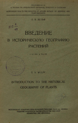 Вульф, Евгений Владимирович (1885-1941). Введение в историческую географию растений / Е.В. Вульф. - Ленинград : Изд-во Ин-та раст. НКЗ СССР, 1932
