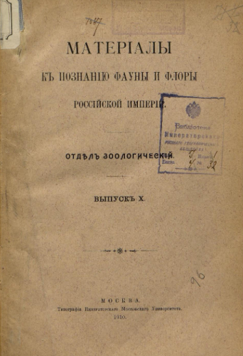 Материалы к познанию фауны и флоры Российской империи. Отдел зоологический. Вып.10. - Москва : Тип. Имп. Мос. ун-та. , 1910