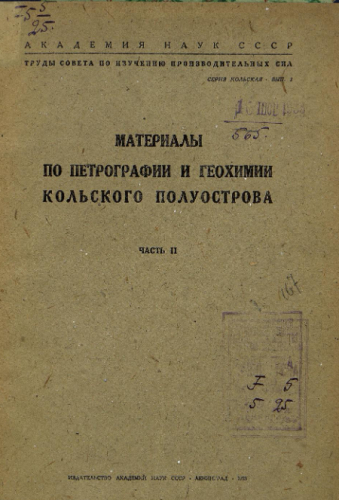 Труды Совета по изучению производительных сил. Серия Кольская. Вып. 3 : Материалы по петрографии и геохимии Кольского полуострова. Ч. 2. - Ленинград : Акад. наук СССР, 1933