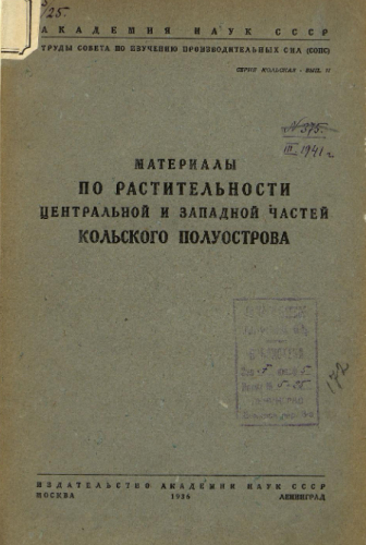 Труды Совета по изучению производительных сил. Серия Кольская. Вып. 11 : Материалы по растительности центральной и западной частей Кольского полуострова. - Москва ; Ленинград : Акад. наук СССР, 1936