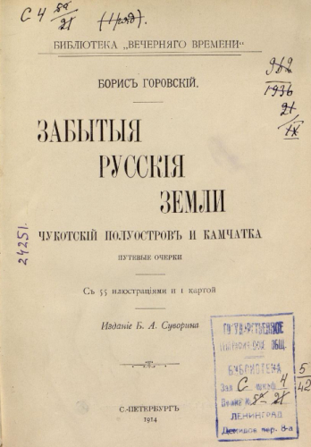 Подгурский, Борис Константинович (-1916). Забытые русские земли : Чукотский полуостров и Камчатка. Путевые очерки / Борис Горовский. - Санкт-Петербург : Издание Б.А. Суворина, 1914.