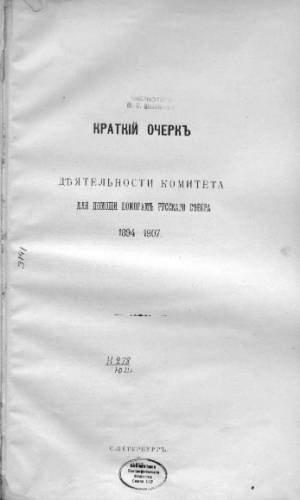Краткий очерк деятельности Комитета для помощи поморам Русского Севера, 1894-1907