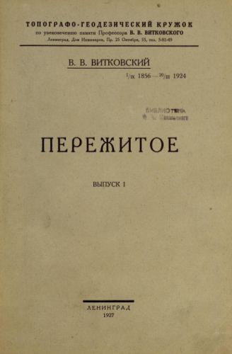 Витковский, Василий Васильевич (1856-1924). Пережитое. Вып. 1-3 / В.В. Витковский ; Топографо-геодезический кружок по увековечиванию памяти профессора В. В. Витковского. - Ленинград, 1927