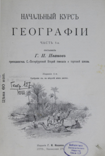 Иванов, Гермоген Иванович. Начальный курс географии [Электронный ресурс] . Ч. 1 / сост. Г.И. Иванов, преп. С.-Петерб. Второй гимназии и торговой шк. - Электрон. текстовые дан. - Санкт-Петербург : изд. Г.И. Иванова, [1908] (2013). - 154 с.