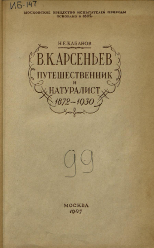 Кабанов, Николай Евгеньевич, (1905–1992). Владимир Клавдиевич Арсеньев, путешественник и натуралист. 1872-1930 / Моск. о-во испытателей природы. - Москва : Изд-во МОИП, 1947