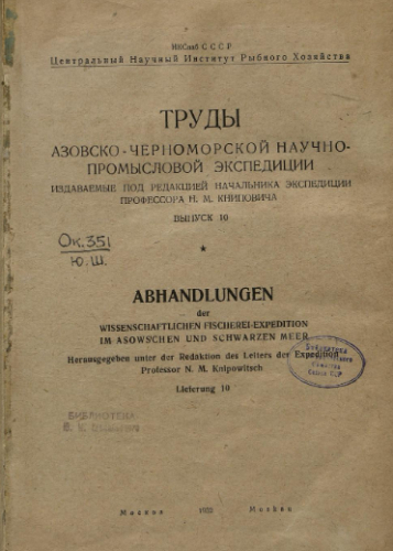 Труды Азовско-Черноморской научно-промысловой экспедиции. Вып. 10 : Гидрологические исследования в Черном море / проф. Н.М. Книпович. - Москва : 23 тип. "Мособлполиграф", 1932
