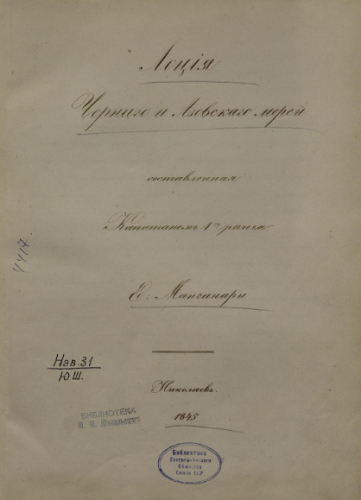 Манганари, Егор Павлович (1796-1868). Лоция Черного и Азовского морей / сост. капитаном 1-го ранга Е. Манганари. - Николаев, 1845