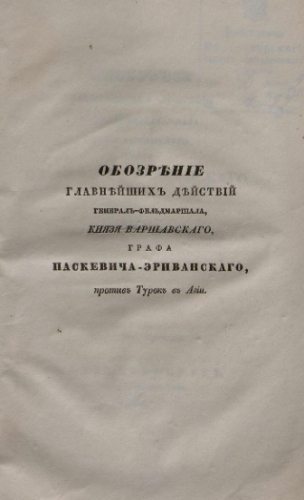 Обозрение главнейших действий генерал-фельдмаршала князя Варшавского графа Паскевича-Эриванского против турок в Азии