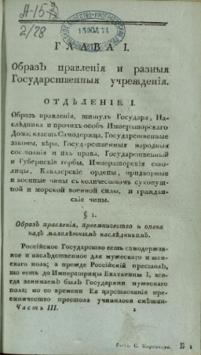 Зябловский, Евдоким Филиппович (1764-1846). Статистическое описание Российской империи в нынешнем ее состоянии, с предварительными понятиями о статистике и Европе вообще в статистическом виде. Ч. 3. / соч. экстраординарным проф. Евдокимом Зябловским. - Санкт-Петербург : Тип. Имп. театра, 1808