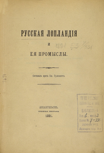 Русская Лапландия и ее промыслы / сост. врач Вл. Гулевич. - Архангельск : Губ. тип., 1891